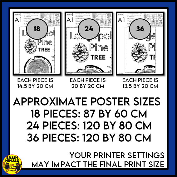 - a horizontally oriented poster. Final poster sizes depend on your printer settings, but the approximate sizes are 18 pieces: 87 by 60 cm; 24 pieces: 120 by 80 cm; 36 pieces: 120 by 80 cm.