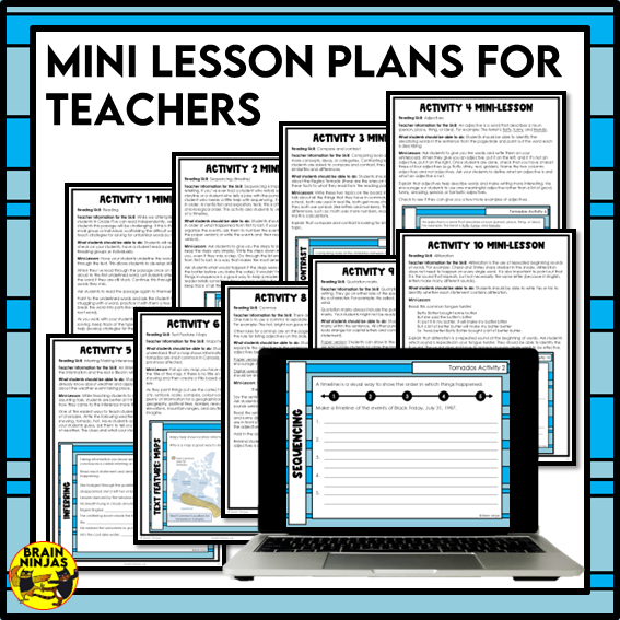 - Quick Mini-Lessons: A lesson for each skill is included to save prep time. These lessons are designed to teach all the skills in this resource without any extra prep or materials. Most lessons take less than ten minutes.