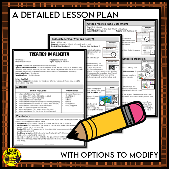 Learn about Alberta's five numbered treaties through a variety of activities that only take moments to prep. Students will learn about the definition and process of treaties in Canada, the specific treaties in Alberta and will create maps of the numbered treaties, while everything teachers need is included. Stop your search for resources for the new Alberta social studies curriculum.