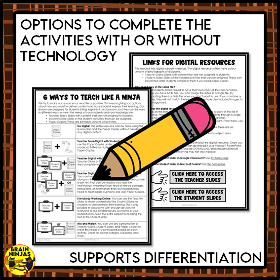 - instructions for how to use our activities with and without technology so you can be flexible for your students and classroom environment.