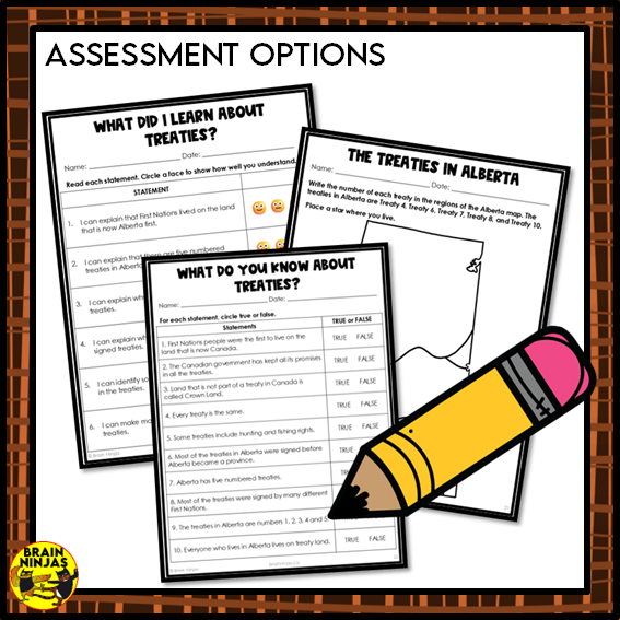 - simple quizzes and assessment activities to see what students have learned about the treaties in Alberta.