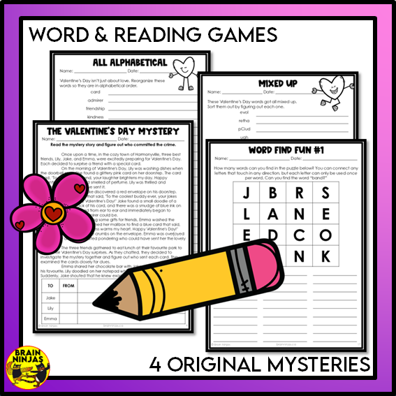 Our students said these activities were perfect for upper elementary because they weren't too lovey-dovey. :)