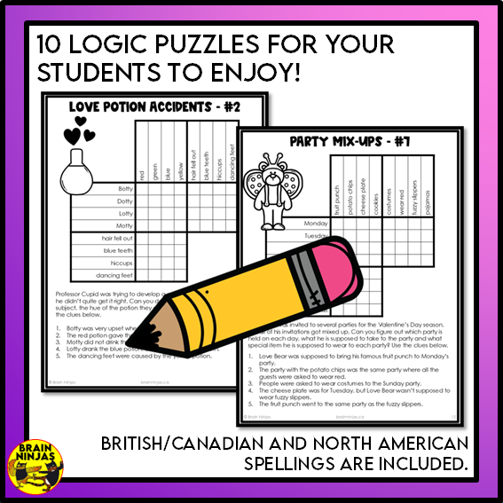 - TEN Valentine's Day-themed logic puzzles. We use these as Valentine party games, Valentine centres, early finishers or for students who need a bit of quiet during a very busy day.