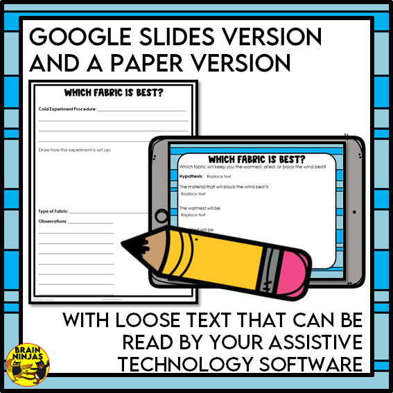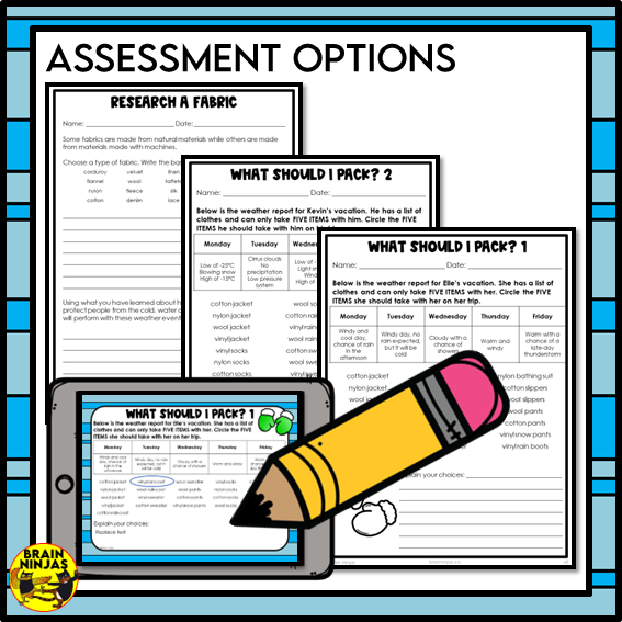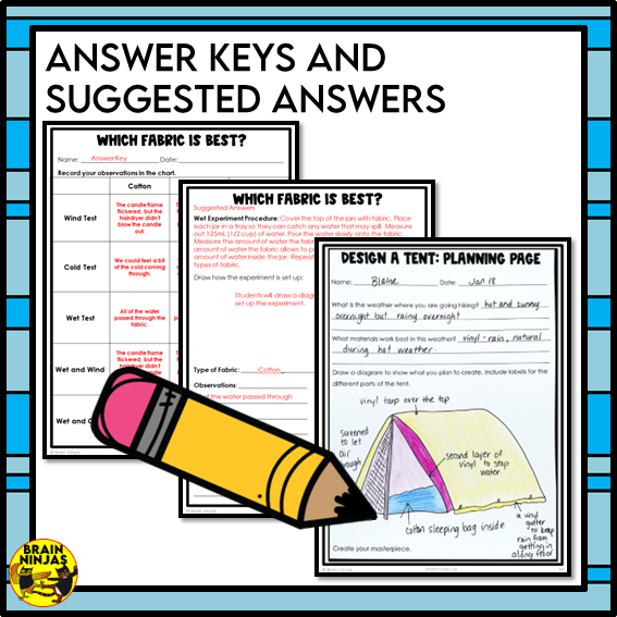 These five different experiments test different types of fabric for specific weather conditions with minimal prep for you. This outcome is often overlooked by teachers because it's not easy to come up with ideas, but we've taken care of that for you.