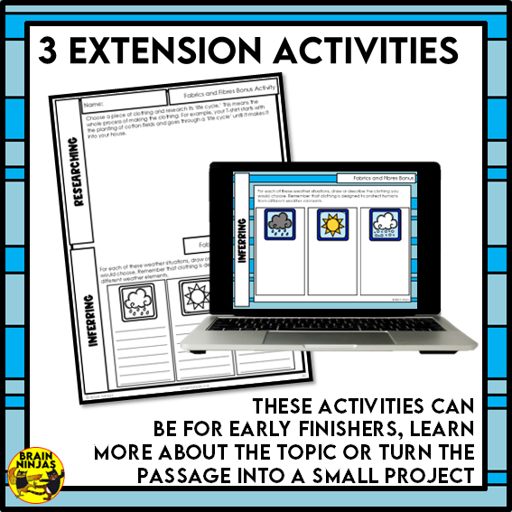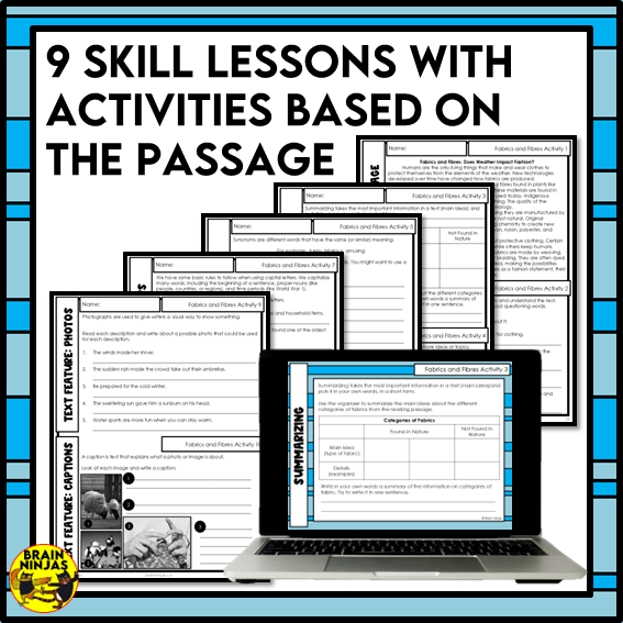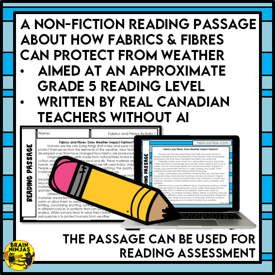 Weather Protection Fabrics and Fibres Reading Comprehension Activities | Paper and Digital