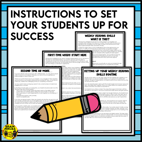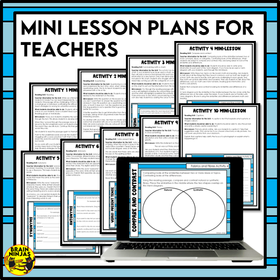 - Quick Mini-Lessons: A lesson for each skill is included to save prep time. These lessons are designed to teach all the skills in this resource without any extra prep or materials. Most lessons take less than ten minutes.