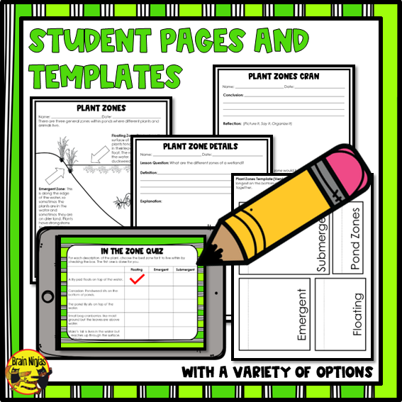 Teach students about the different zones where plants and animals survive and thrive within a wetland through these activities and assessments that require no more prepping than choosing the activities your students will enjoy.